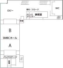 ドリンクカウンターを備えた、交流空間として充実したホワイエ